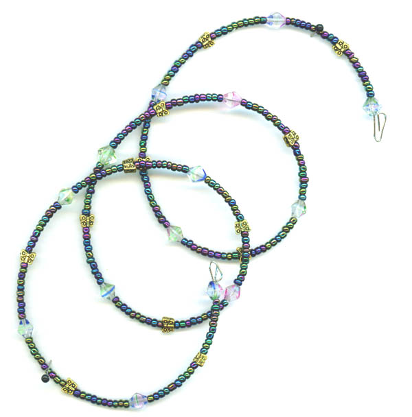Memory wire purple multi-colored beads, Czech glass crystals,
