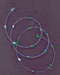 wire bracelet ghost black seed beads and emerald AB Czech glass beads