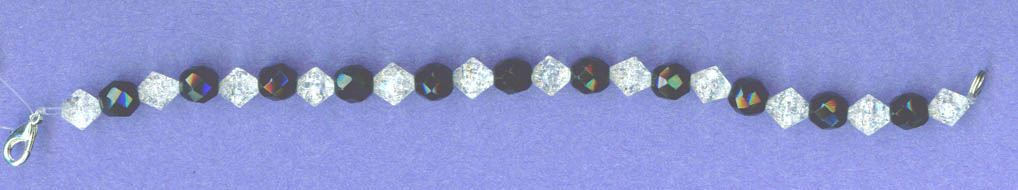 Bracelet: Woven Swarovski bi-cone bracelet using clear AB and black diamond crystals silver toggle clasp. $20.00 |