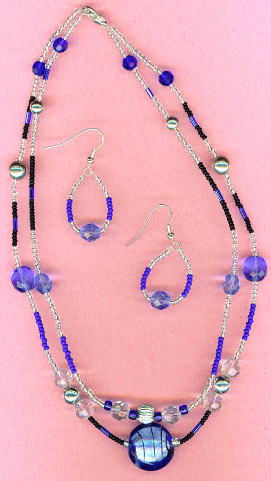 Necklace set: Double strand cobalt blue w/silver 16 $20.00 |