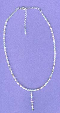 | Necklace set: Five strands of seed beads and silver ball spacers flanking an AB crystal drop chain allows for variety of length from choker/short length. $25.00 |